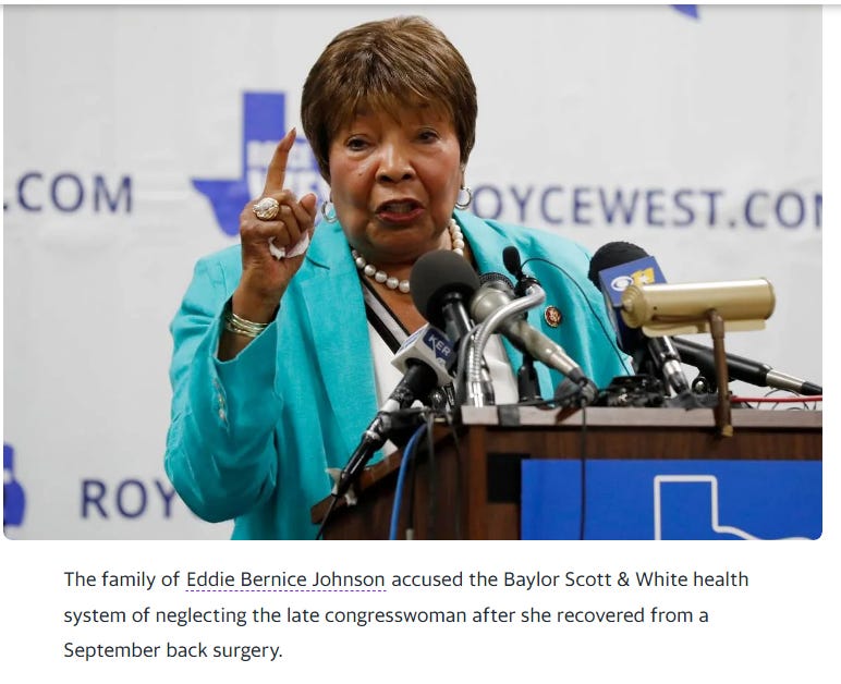 How’s that AmeriKKKa, fucking Biden-Harris? Trump-Clowns? Johnson, the pioneering Black nurse, state lawmaker, and U.S. representative from Dallas, died Sunday at 89.