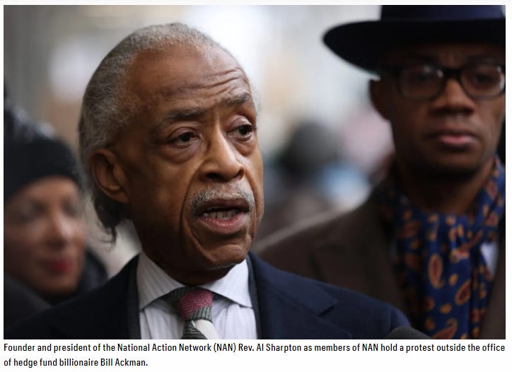 Which Fucking Jews can you find and still not be called antisemitic? Protesters led by civil rights activist Al Sharpton picketed Bill Ackman’s Manhattan offices Thursday, condemning the billionaire investor’s campaign to oust Harvard University president Claudine Gay and his denouncement of the school’s diversity efforts.
