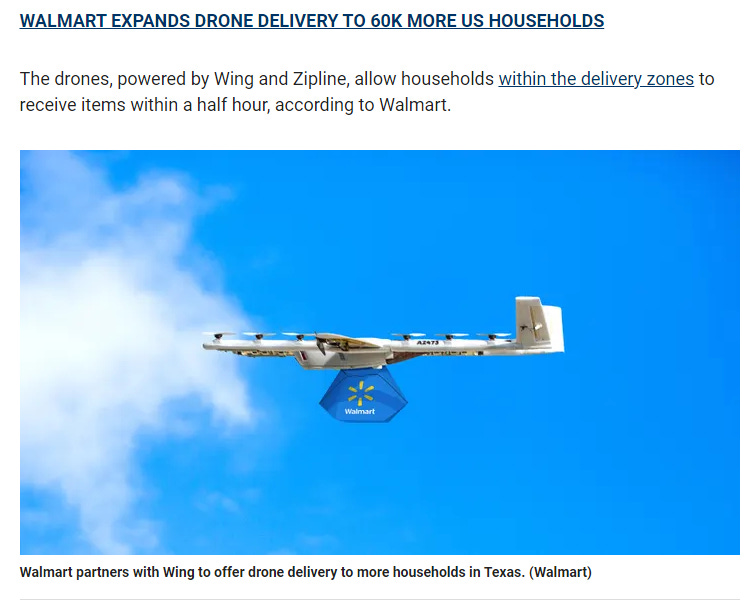 Walmart is jumping on the AI trend for now. The company said it’s implementing it in everything from its supply chain to its app, along with developments to drone delivery and shopping at Sam’s Club.