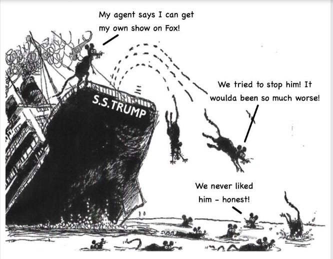 Look, the billionaires and all their sycophants, their Eichmanns, big and small, all those henchwomen, all those black-robed bought-and-paid-for judges and adjudicators, all the neo-cons in liberal sheep’s clothing, AKA, neo-liberal-totalitarians, all of them, are running like rats from a sinking ship.