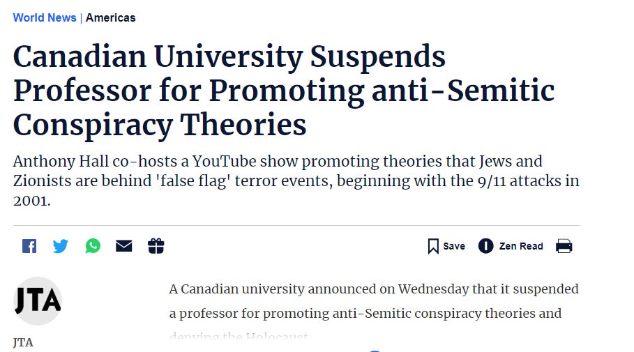 Is this going to get the college prof in trouble, citing old news, having students going WAY back to see what this Jewish First and Zionist Always and Israel Mothership noise is all about?
