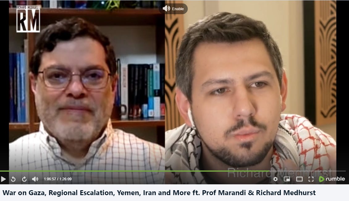 Listen up, watch, hear, see, feel: War on Gaza, Regional Escalation, Yemen, Iran and More ft. Prof Marandi & Richard Medhurst
