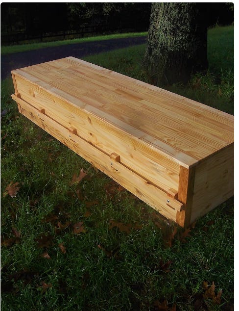 Something about those pine coffins and this piece of human crime syndicate?