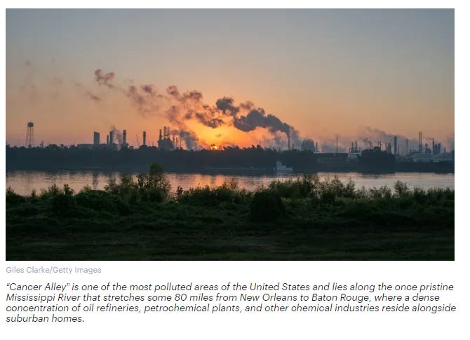 Cain’s ruling comes the same day as a report from the National Minority Quality Forum, which found that 56 percent of communities of color are sited within 3 kilometers of a site producing carcinogenic waste. The town of Reserve in St. John the Baptist Parish has cancer risks about 50 times the national average.