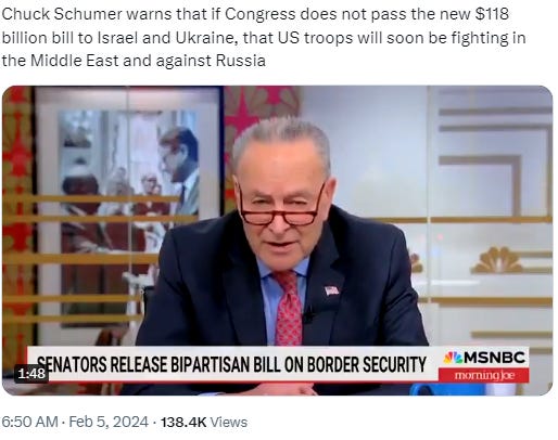 And Criminal Chuck Schumer states $118 billion must go to Jewish Nazi Zeneksy and Jewish Nazis, Israel, or US boys and girls have to go fight “over there.”