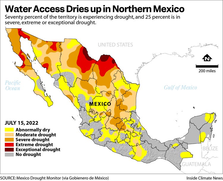 Three dams which supply water to the Valley of Mexico are only 30% full, Mexican outlet Excelsior reported this week. The National Water Commission estimates that Mexico City and some surrounding areas could run out of water by Aug. 26 if reservoirs aren’t replenished or consumptions isn’t cut significantly. Mexico is now one of the largest consumers of bottled water, along with China and the U.S., Americas Quarterly noted last year, and 57% of the population lacks access to safe drinking water. The country needs to overhaul and update its dams and distribution systems to ensure water supply to residents, the outlet wrote. The issue has taken on a fresh urgency in the lead up to Mexico’s upcoming elections: Claudia Sheinbaum, Mexico City’s former mayor, is the frontrunner to win.