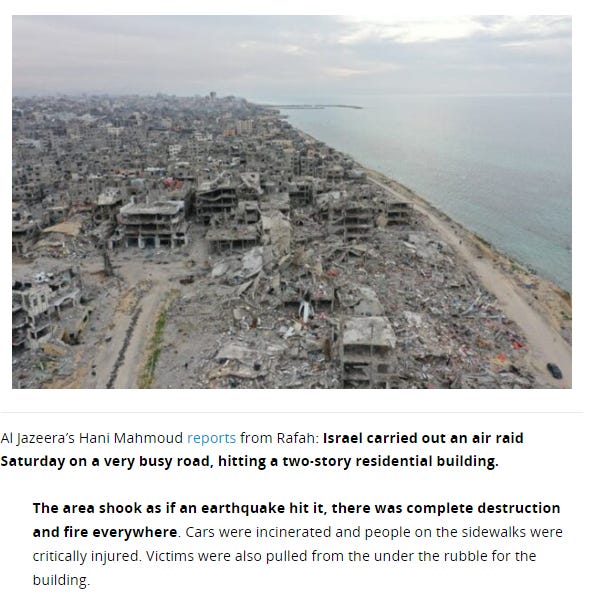 People being murdered in Gaza? It’s fucking a stain on humanity, on Jews, on American Jews and non-Jews, Klanadians, EuroTrashLandian, all of the fucking Arab countries that import (buy) spyware, guns, bombs, the meatgrinder tools of war from ISRAEL and USA.