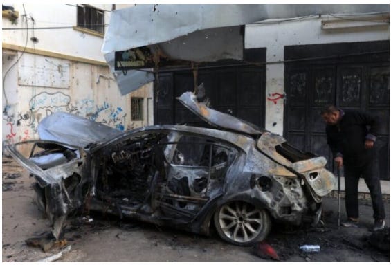 The site of the assassination of Yasser Hanoun by an Israeli military drone