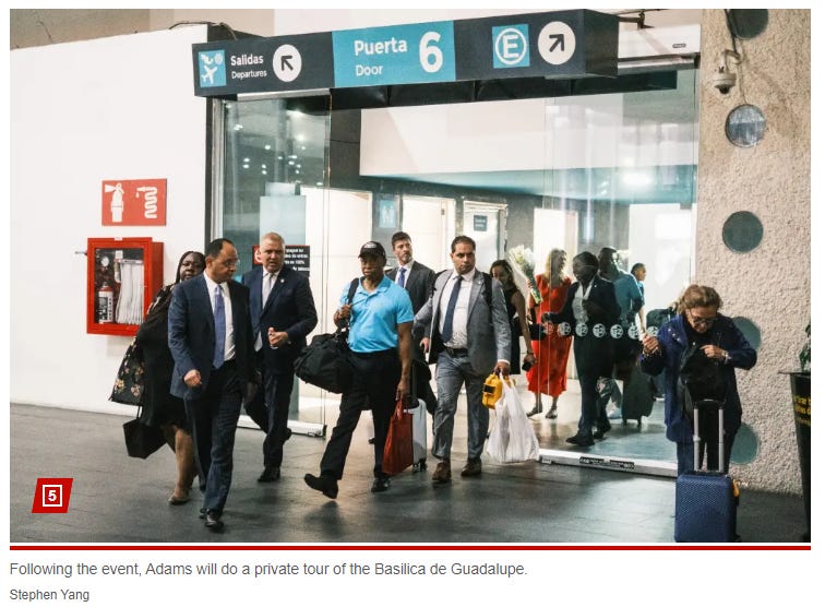 Then this human stain, Mayor Adams? Why are all these fucking governors and mayors stains like a Trump Tuck Pad stain? Mayor Adams arrives in Mexico to kick off his migrant discouragement tour