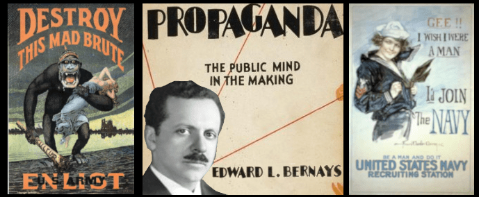 Edward Bernays. Learn that name. He was truly one of the most influential and evil men of the 20th Century. He’s called the “father of public relations” and indeed, he insisted that the term, “public relations” replace “propaganda” for… public relations reasons. Bernays has blood on his hands for his work with cigarette companies pushing their deadly products, and with the United Fruit Company instigating a coup in Guatemala. He was Freud’s nephew and he applied his uncle’s theories to manipulating people. When WWI was raging, but before the US was involved, Bernays worked for the Wilson administration to convince the isolationist American public—which wanted to stay out of the conflict—to start hating Germans and to support US entry. It worked. Within a year, people were refusing to eat sauerkraut. This was the founding of the modern propaganda / public relations machine, and it’s only gotten more sophisticated over time. We live in the Age of Bernays.