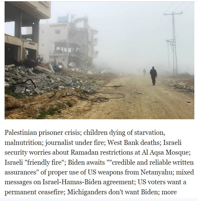 And, then, the 24/7, nanosecond by nanosecond shit, pure evil, pure inhumane shit, from Jewish Israel, while the feeds have dieting advice money-making tips, weather alerts, sporting event updates, fear porn, cop porn, all the war porn, medical fear, failing infrastructure postings, mixed in quickly with Aaron Bushnell immolating and Gaza just being Gaza — extinction after extinction of individual futures.