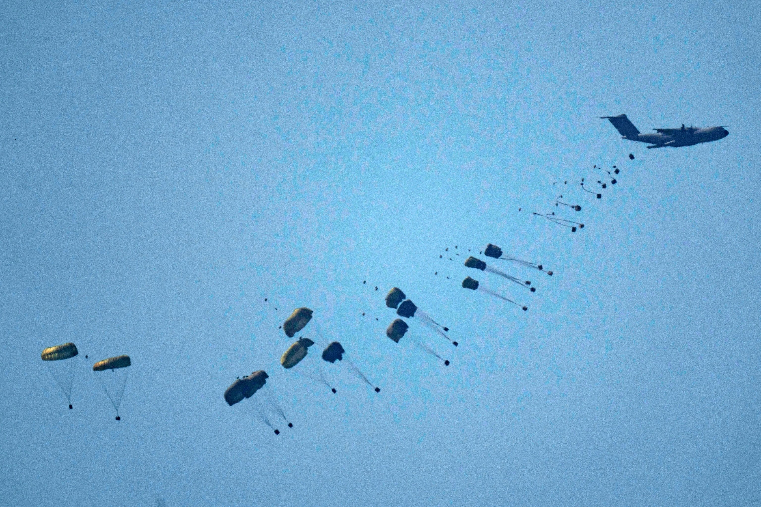 Video of the incident showed parachutes being deployed over northern Gaza carrying aid as Palestinians were seen running toward the coastline to retrieve the packages.