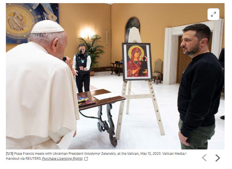 Ahh, “negotiate” is not in the ZioAzovNazi Lensky’s vocabulary, man. And, now the Pope is on the kill list the Ukrainians have been populating since was before 2022!