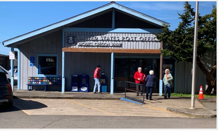 USPS in my neck of the woods? All forced and planned disruption. “After two months of stop-and-go chaos, the Yachats operation is relying on a single clerk with some help from post offices in Newport and Florence. Yachats had previously been authorized to have a postmaster and two clerks.