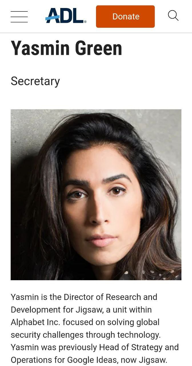 Ahh, here’s her Zionist and Jewish Supremacist roots. In a longer bio, https://www.influencewatch.org/person/yasmin-green/