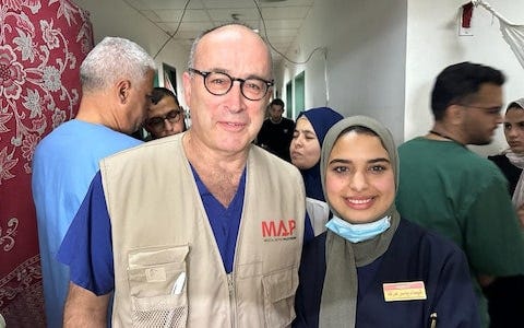 DR. NICK MAYNARD: I saw things at Al-Aqsa Hospital which I still wake up at night thinking about — appalling injuries in particularly women and children, the most devastating burns in small children. One child that I’ll never forget had burns so bad, you could see her facial bones. We knew there was no chance of her surviving that, but there was no morphine to give her. So, not only was she inevitably going to die, but she would die in agony.