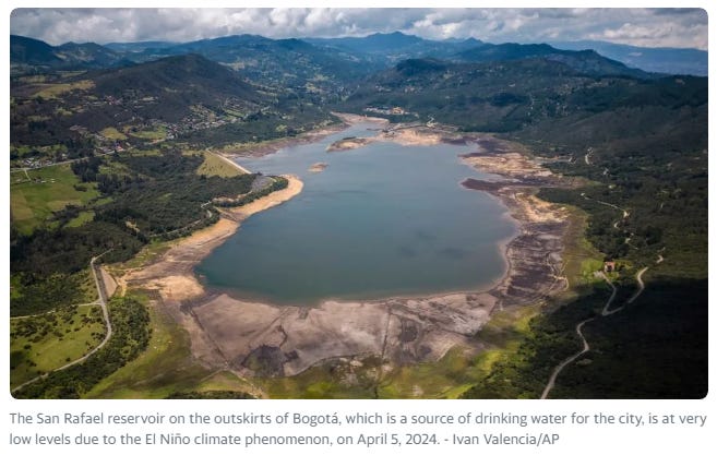 Tepid? And this is the world in a nutshell, with trillions spent on mercenary forces, the dirty techno-fascism of modern AI and Satellite War: “The rationing came into effect Thursday morning. Bogotá and dozens of surrounding towns have been divided into nine different zones with domestic running water cut off for 24 hours in each zone on a rotation that will reset every 10 days. The measures will affect approximately 9 million people.”