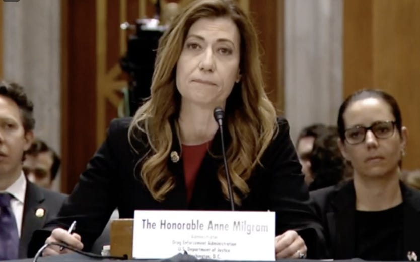 So many Jews running the UnUnited Snake$ of Israel: DEA Administrator Anne Milgram testifies before the Senate Foreign Relations Committee on countering illicit fentanyl trafficking on Feb. 15, 2023.