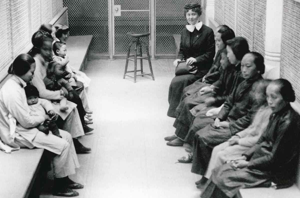 Immigrants at the Angel Island Immigration Station, which opened in 1910 to process minimal immigration from Asia and the Pacific. Source: Angel Island Immigration Station Foundation