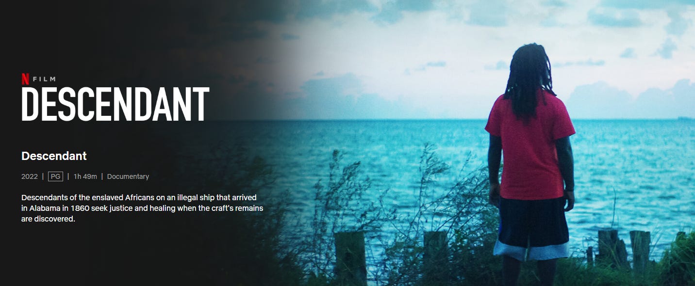 That slave ship. That illegal slave ship. That fucking Alabama Cheating and Lying White Dirty Family. That history of destroying the ship and going silent on its wehreabouts. That Alabama. That fucking place, but first, environmental racism, which is covered in the documentary, Descendent: