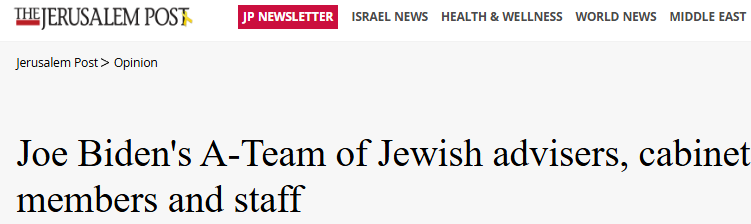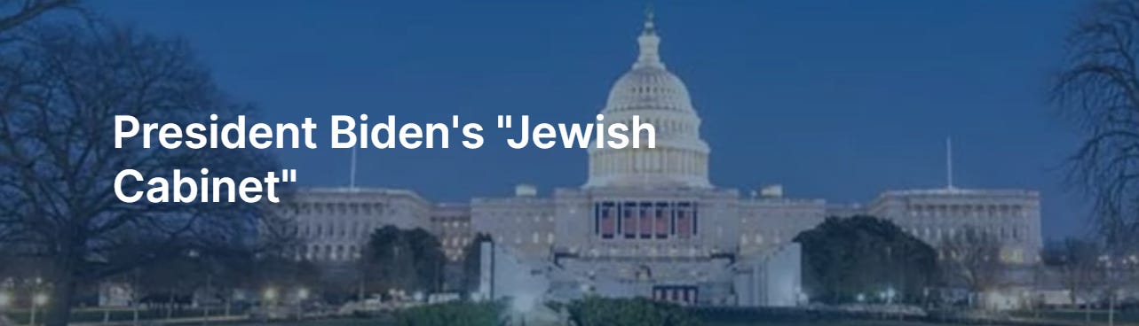 To be fair, the Trump administration, too, had many Jews in senior positions. Among them: Jared Kushner, son-in-law and senior advisor; Elliot Abrams Special representative for Venezuela, then Iran; David Friedman, Ambassador to Israel; Jason Greenblatt, Special Representative for International Negotiations, the Israeli-Palestinian Conflict; Steve Mnuchin, Secretary of the Treasury; Stephen Miller, Senior Advisor, Policy; Gary Cohn, Director, White House National Economic Council; Reed Cordish, Assistant to the President, Intragovernmental and Technology Initiatives; Avrahm Berkowitz, Deputy Advisor to the President; Rod Rosenstein, Deputy Attorney General; Elan Carr, Special Envoy to monitor and combat antisemitism; Ellie Cohanim, Deputy Special Envoy to monitor and combat antisemitism; Jeffrey Rosen, Attorney General; Morgan Ortagus, Spokesperson, State Department; David Shulkin, Secretary of Veterans Affairs; Lawrence Kudlow, Director National Economic Council; Ivanka Trump, daughter, Advisor to the President; John Eisenberg, National Security Council Legal; Ezra Cohen-Watnick, Acting Under-Secretary of Defense for Intelligence; Len Khodorkovsky, Deputy Secretary of State and Senior Advisor to the US Special Representative for Iran.