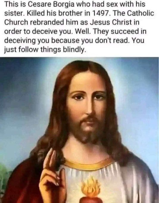 Fucking White Mother Fucking ATF-NRA-Pedophilia: Not only was Cesare Borgia the inspiration for Machiavelli’s The Prince, some believe he’s also the inspiration behind modern depictions of Jesus Christ (similar to this illustration of the Christian Messiah).