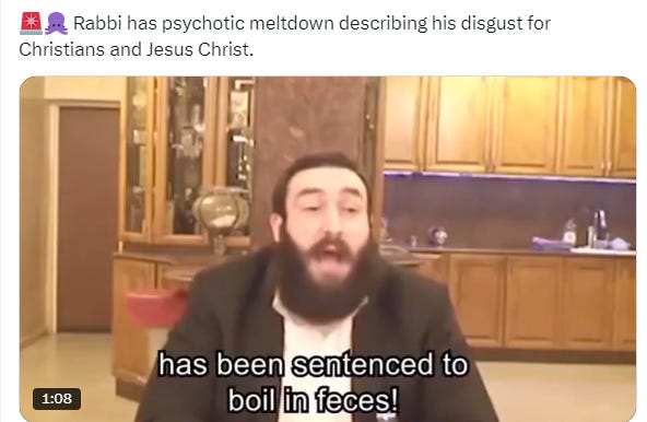 – “it’s retarded for Christians to believe that God took on the sin of the world with his sacrifice on the cross goyim!” Meanwhile they believe thrashing Chickens against the wall every year accounts for their sin and they can fool go