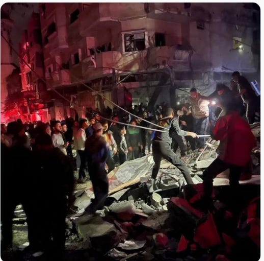Jеws did this to a refugee camp today. Over 25 lives, mostly women and children, were murdered in the horrific massacre in Nuseirat, central Gaza.