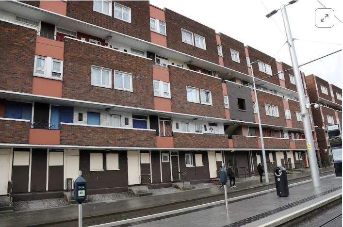[Council flats on Dominick Street Lower, in Dublin, Ireland January 30, 2020.]