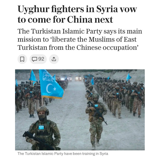 I can dig what he does above, but then, he just has to China Fake with the so-called Uyghur problem, you know, those fucking freaks who ended up in Syria with the head choppers and vow to return to China, with a little help from u$A: