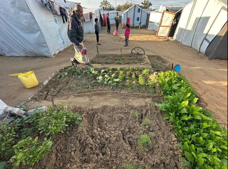 Love they neighbor? Fuck: Gazans use any space to grow crops to survive . . . Israel’s siege on Gaza and the reduction in the number of food trucks allowed into the Strip has meant a kilogramme of tomatoes is now between 30 and 60 times higher than it was before October 2023, while onions are 20 times more expensive than they were 15 months ago.
