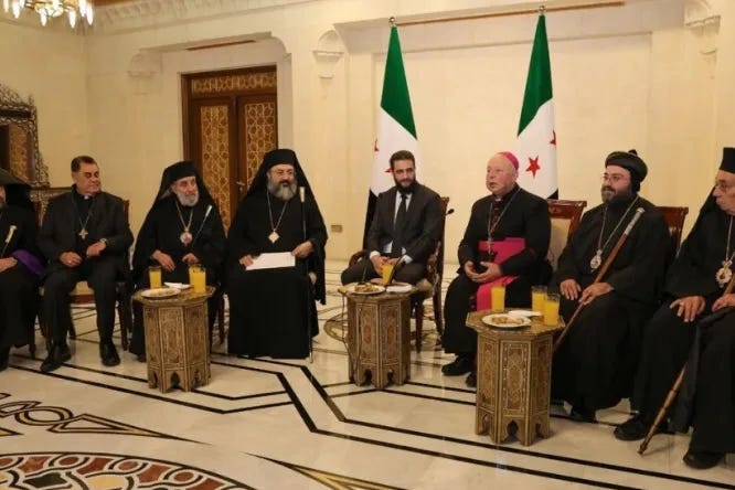 The clerics discussed issues related to the Syrian Constitution, democracy, and equality. Al-Sharaa responded by citing his long years living alongside Christians in Damascus and Daraa. He affirmed that Christians are an integral component of Syrian society.