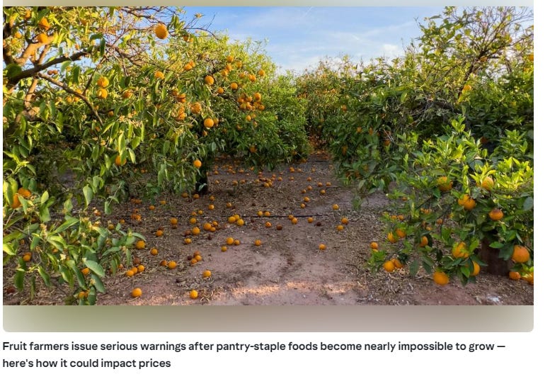 While Yemen and Gaza and Lebanon and Somolia and Haiti burn: According to Food & Drink, catastrophic flooding in Spain in October severely impacted the nation’s crop yields, resulting in estimated damages of around $205 million.