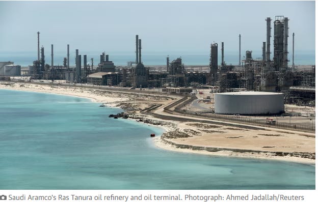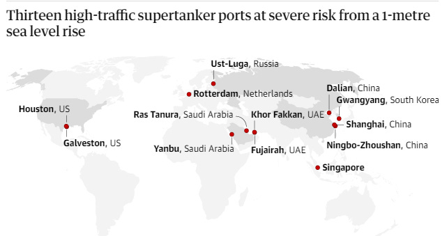 Back on the Insanity Front: ‘Ironic’: climate-driven sea level rise will overwhelm major oil ports, study shows . . . Ports including in Saudi Arabia and the US projected to be seriously damaged by a metre of sea level rise