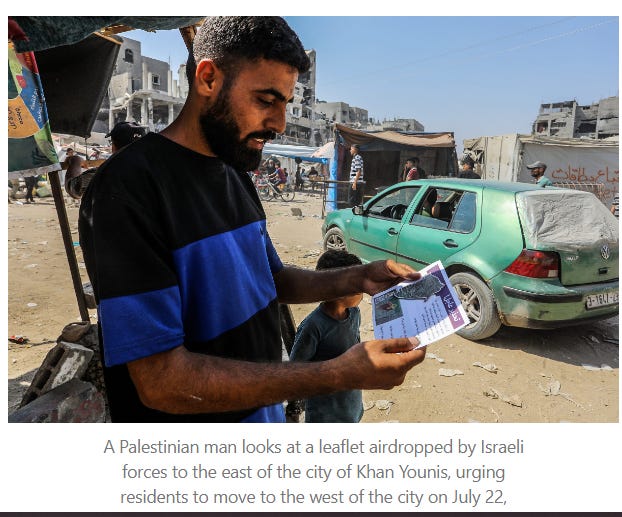 The Israeli military is ramping up its campaign of propaganda and psychological warfare against the Palestinians of Gaza, expanding its drops of leaflets across the Strip. The messages are mostly crude warnings, threats or appeals to turn against Hamas and inform on its members and to encourage local residents to collaborate with Israel.