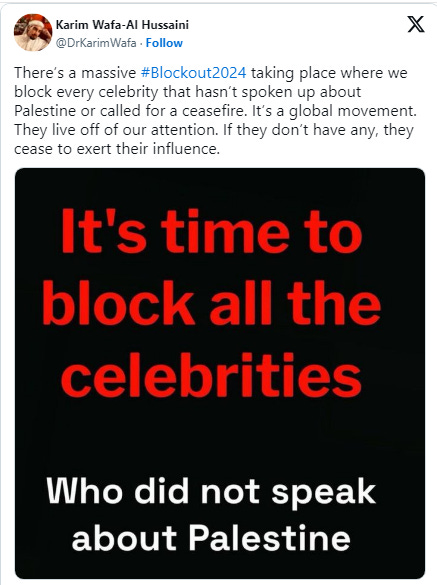 The growing protest efforts against Israel’s war on Gaza have now spawned a cyberspace movement that has erupted in the past few days, targeting celebrities who are seen as being insensitive towards, or even supportive of, the death and destruction in the Palestinian enclave.