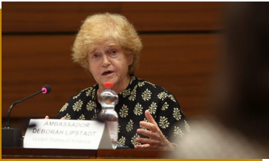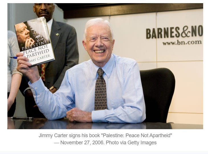 A furious uproar ensued upon the book’s release. One notable contribution was from Deborah Lipstadt, the court historian later appointed to the Biden Administration as “special envoy” for combating anti-Semitism — a makework State Department post whose vague requirements mostly seem to entail exhorting corporations and supplicant governments to more aggressively monitor and punish unseemly political speech. Lipstadt’s January 2007 column in the Washington Post, obnoxiously titled “Jimmy Carter’s Jewish Problem,” strikes a contrived tone of bereaved disappointment that Lipstadt had tragically found herself needing to accuse the once-beloved Carter of trafficking in “anti-Semitic stereotypes.” The column culminates in a predictably idiotic comparison of Carter with David Duke. Typical for Lipstadt, her charges of “anti-Semitism” more rely on elliptical imputations of “anti-Semitism” by omission or convoluted inference, rather than anything plausibly “anti-Semitic” that Carter had ever actually done or said. Conspicuously few direct quotes from Carter’s book supply the ammunition for her fusillade. Instead, Lipstadt complains that Carter only “makes two fleeting references to the Holocaust” in a book focused on the political and diplomatic situation of Palestinians, which is enough to get Lipstadt’s darkest suspicions roused. Carter’s failure to dedicate his book more robustly to the Holocaust “gives inadvertent comfort to those who deny its importance or even its historical reality,” according to Lipstadt. That Carter had once signed the legislation that brought the US Holocaust Museum into existence was no solace, per Lipstadt.