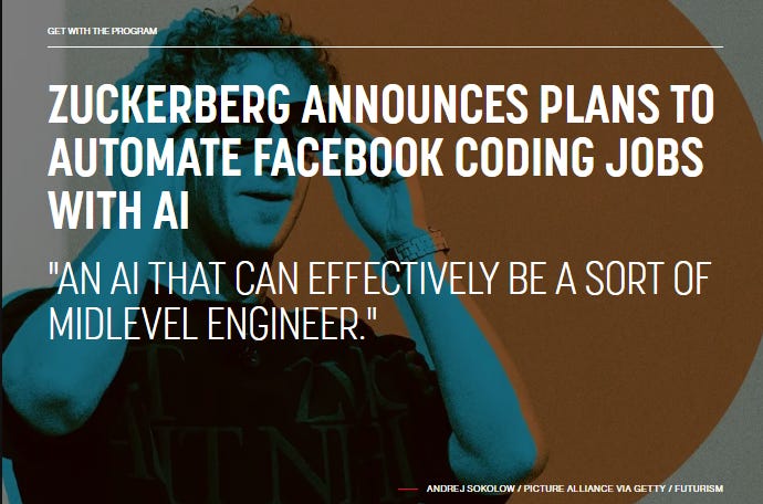 Though Zuckerberg doesn’t explicitly say he’ll replace his human grunts outright, putting two and two together as he explains how the AI technology will pan out — or looking at literally any company that has bragged about onboarding AI models — makes the implications for people’s jobs pretty clear.