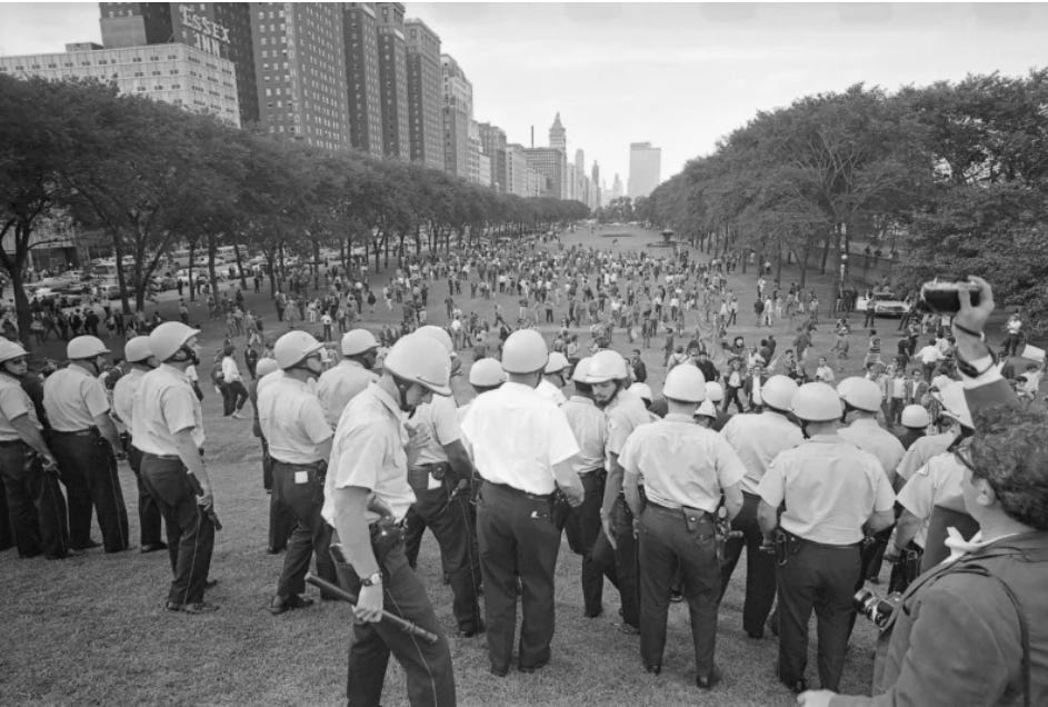 For some Americans, just saying “Chicago 68” is enough to bring it all back. Add the words, “Democratic National Convention” and millions more can visualize brawling delegates, billowing clouds of tear gas and police batons flailing at long-haired protestors.