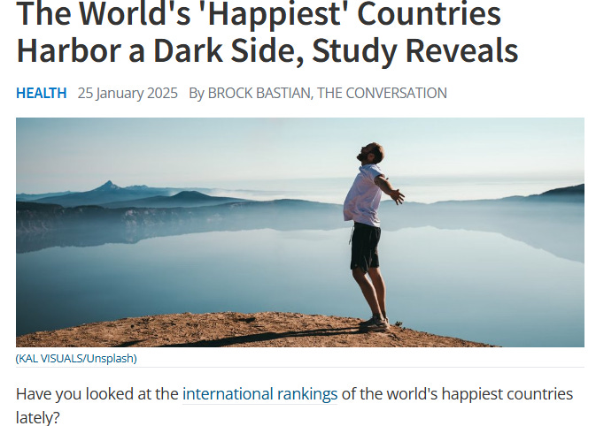 In our research, published in Scientific Reports, we found that in countries which rank the highest in national happiness, people are also more likely to experience poor wellbeing due to the societal pressure to be happy.