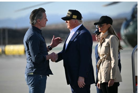 Fucking sick puppy, this Rapist in Chief: President Donald Trump offered a message of bipartisanship following his Friday tarmac greeting with California Gov. Gavin Newsom, a Democrat.