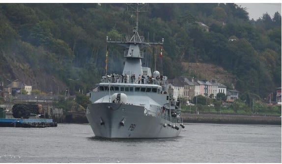 [The Irish Naval Service vessel LE Samuel Beckett. The Naval Service has not got one warship capable of naval combat. — THIS IS A GOOD FUCKING THING, Dorcha.]
