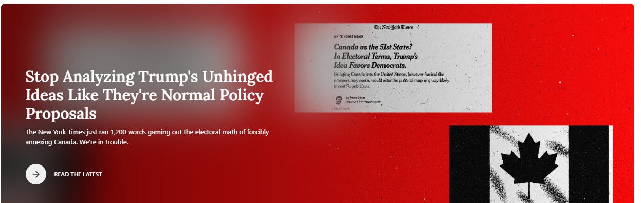 The New York Times just ran 1,200 words gaming out the electoral math of forcibly annexing Canada. We’re in trouble.