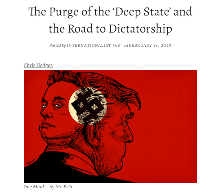We are repeating the steps that led to the consolidation of power by past dictatorships, albeit with our own idiom and idiosyncrasies. Those naively lauding Trump’s hostility towards the deep state — which I concede did tremendous damage to democratic institutions, eviscerated our most cherished liberties, is an unaccountable state within a state and orchestrated a series of disastrous global interventions, including the recent military fiascos in the Middle East and Ukraine — should look closely at what is being proposed to take its place.