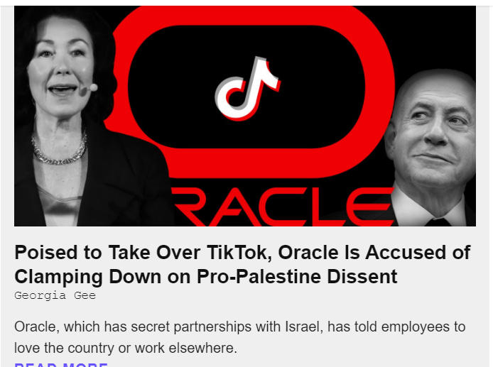 Oracle, which had already taken control of some of TikTok’s day-to-day operations, had taken a firm pro-Israel stance and, according to an Intercept investigation, clamped down on pro-Palestine activism inside the company.