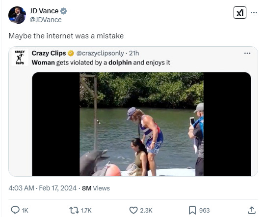 Speaking of crazy beliefs and conspiracy theories, Vance once floated the idea that Biden had weaponized border policy against Trump’s base in an attempt at mass retribution via fatal overdose.