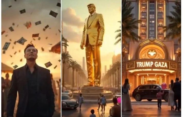 What follows is a pornography of power that would make Napoleon blush. Golden Trump statues rise from blood-soaked earth. Wealthy tourists frolic where Palestinian children once played. Casino lights flash above mass graves. Each frame screams the truth about our ruling class: they do not see human beings; they see assets to be seized and territories to be branded.