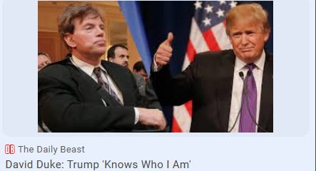 [Trump’s defense of the ‘very fine people’ at Charlottesville white nationalist march has David Duke gushing]