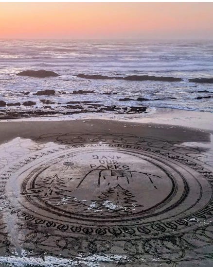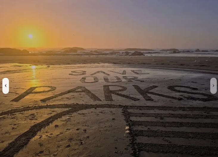 Right next door, Andy’s wife is on the street saying, with signs, Rehire Our State Parks Workers.