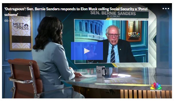 “That’s a hell of a ‘Ponzi scheme,'” Sanders said, referring to what Musk called Social Security on Friday, “when for the last 80 years, Social Security has paid out every nickel owed to every eligible American.”